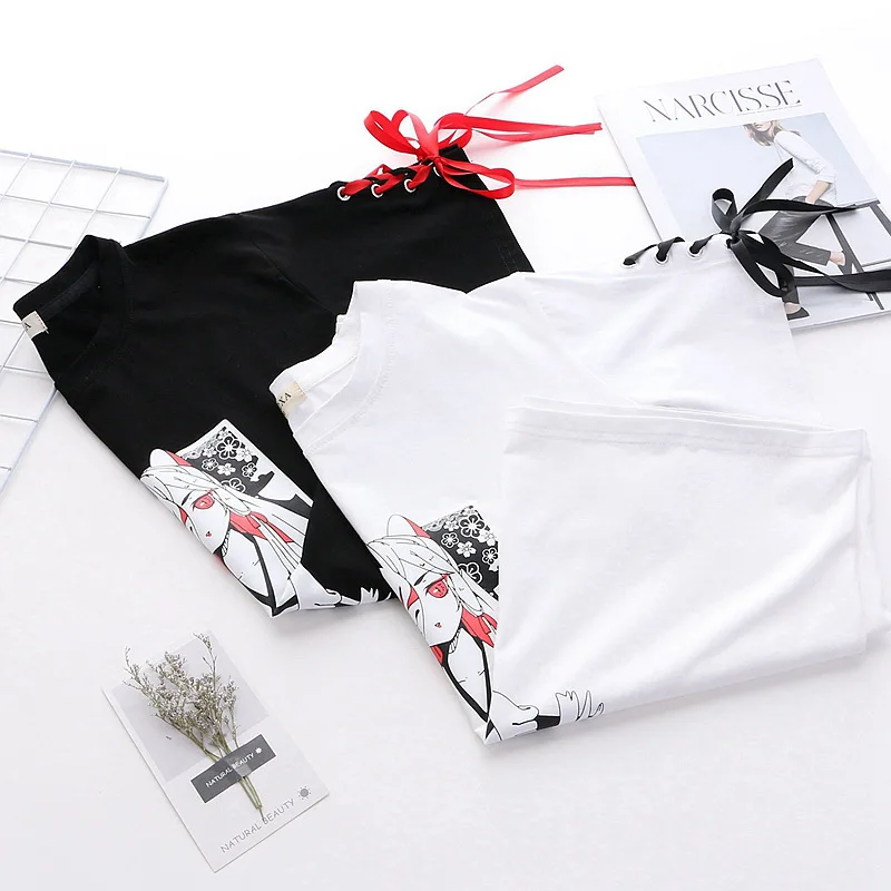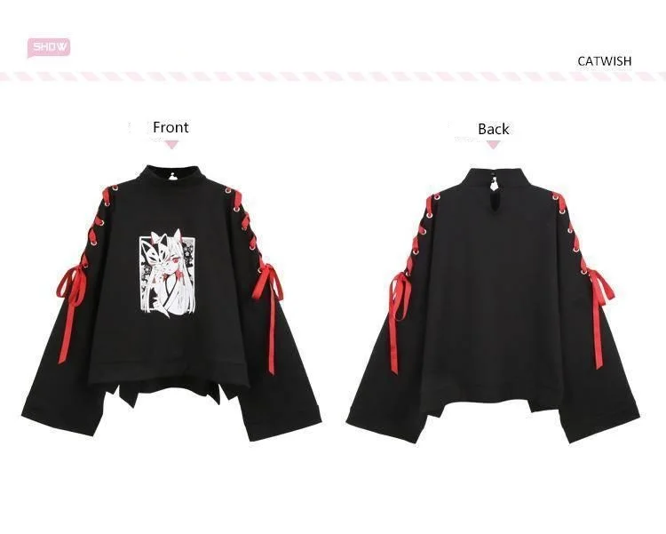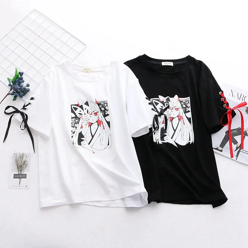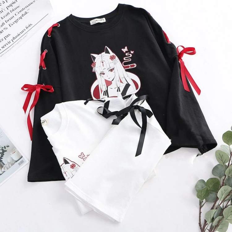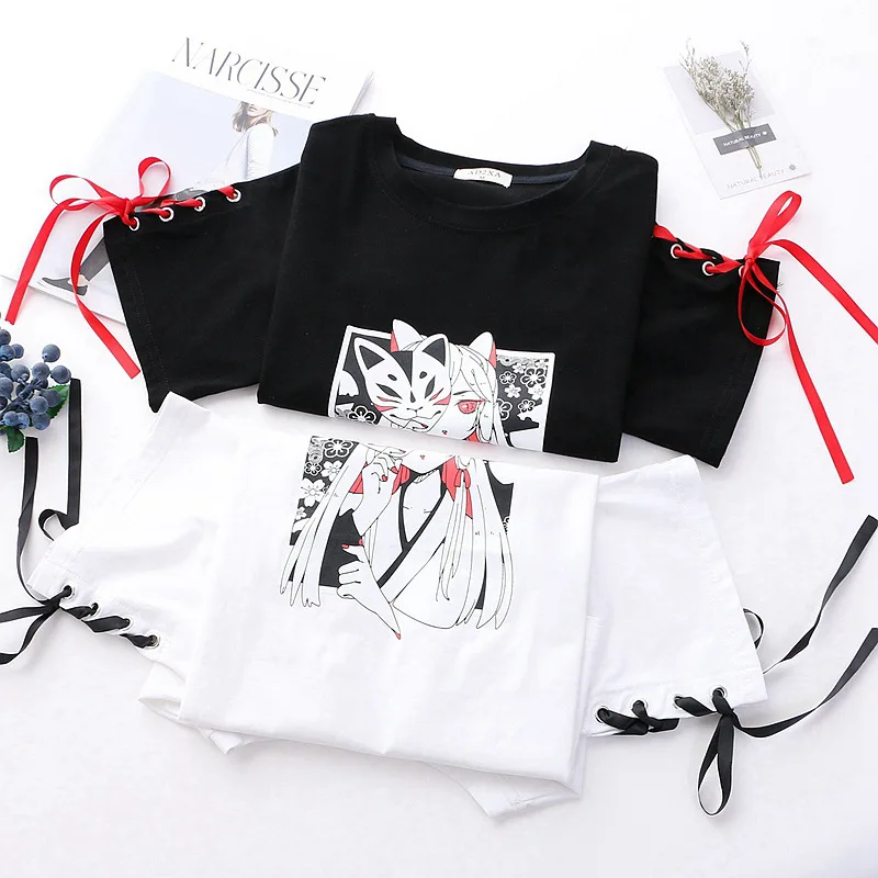 Summer Women’s clothing cosplay Anime fox printed cross ribbon