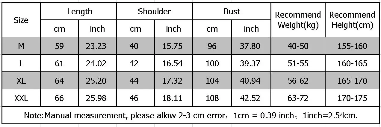 | Size | M, L, XL, XXL |