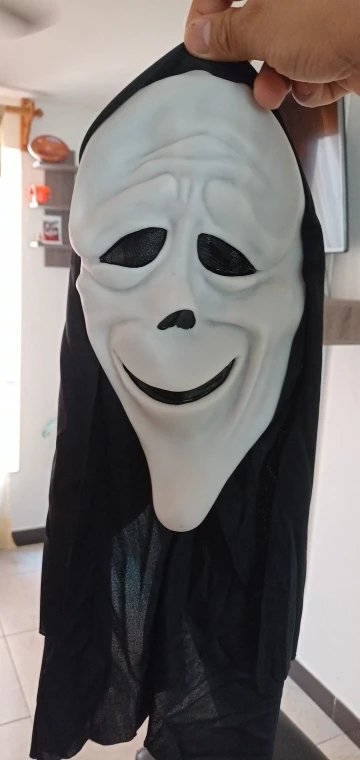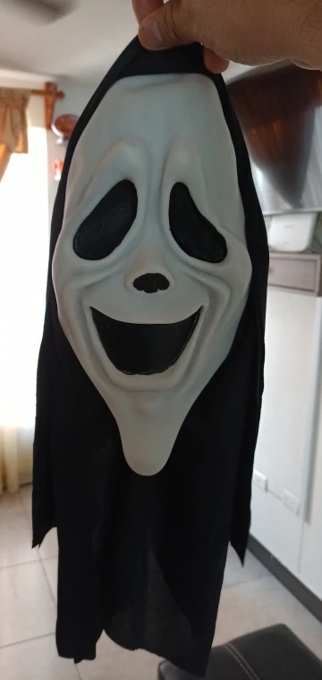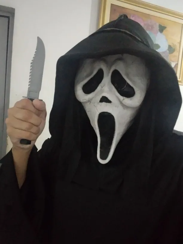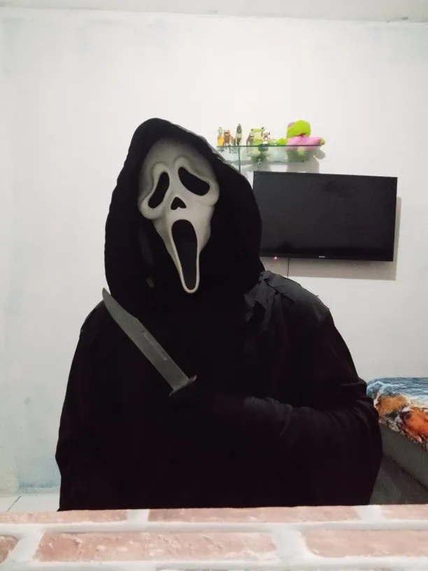 Very good the mask, very realistic, it only came a little deformed but from what I saw it is easy to leave normal again, in short, very good the mask and the knife is nothing more but also beautiful, a positive point is the eyes, That you can hardly see from the outside and inside to see everything, 10/10