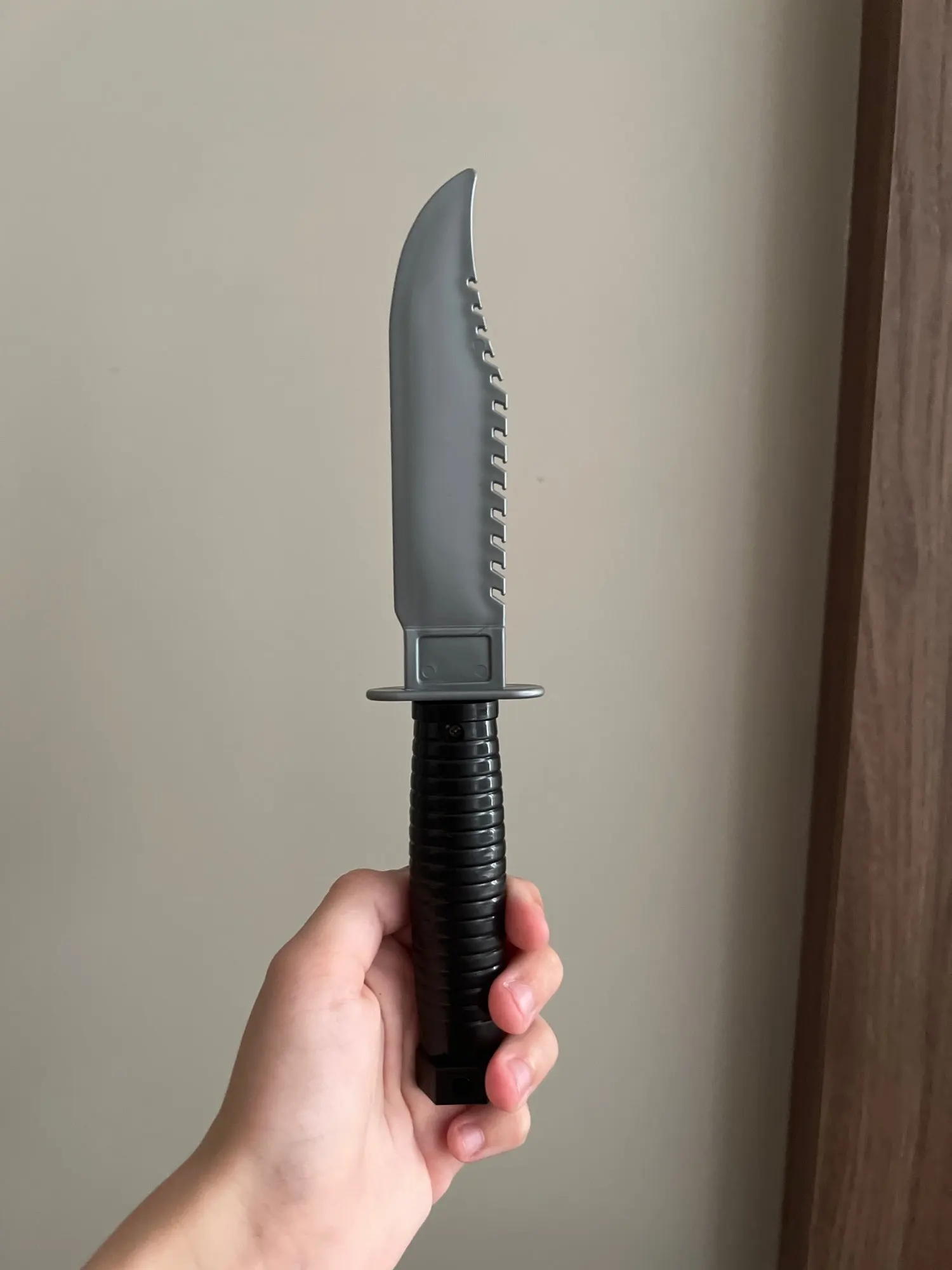 as described, knife is sturdy plastic and doesnt retract or anything. mask had major plastic odor but that’s to be expected, just air it out