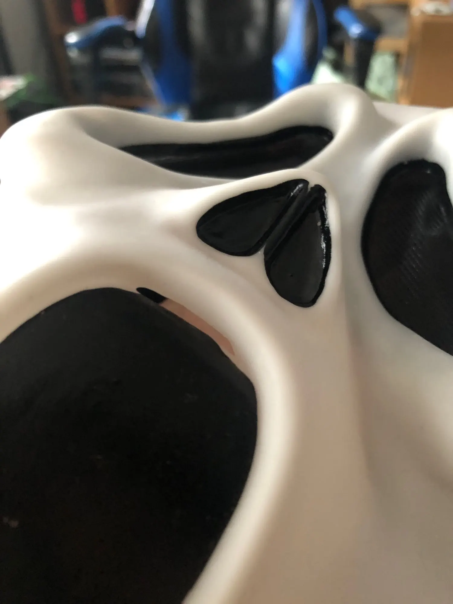 What can I say? An absolutely perfect replica of the OG Ghost Face mask! Probably the best bootleg one I’ve seen, especially for the price. My mask didn’t come misshapen or with any defects at all. No smell, other than the standard scent you would expect for a plastic mask. The fabric of the hood is great too, has a nice deal of stretch to it though it may run a bit small for a standard adult male. Regardless of that, it’s great and I’m very happy with my purchase!
