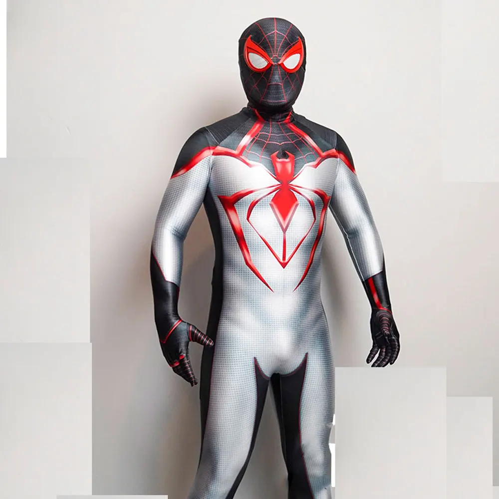Halloween Adults Kids Miles Morales PS5 Spiderman Peter Parker Superhero Cosplay Costume Full Bodysuit Zentai Second Skin Party
