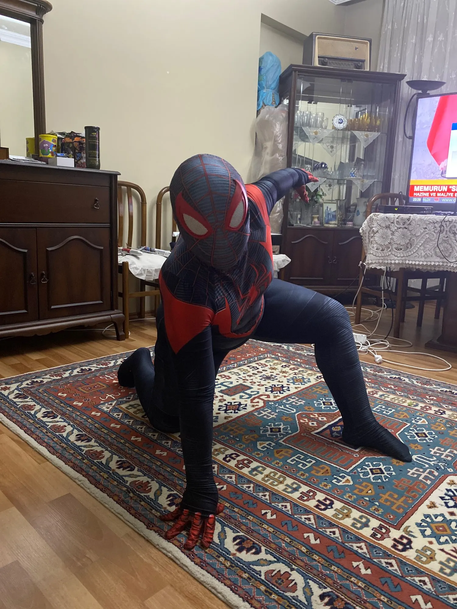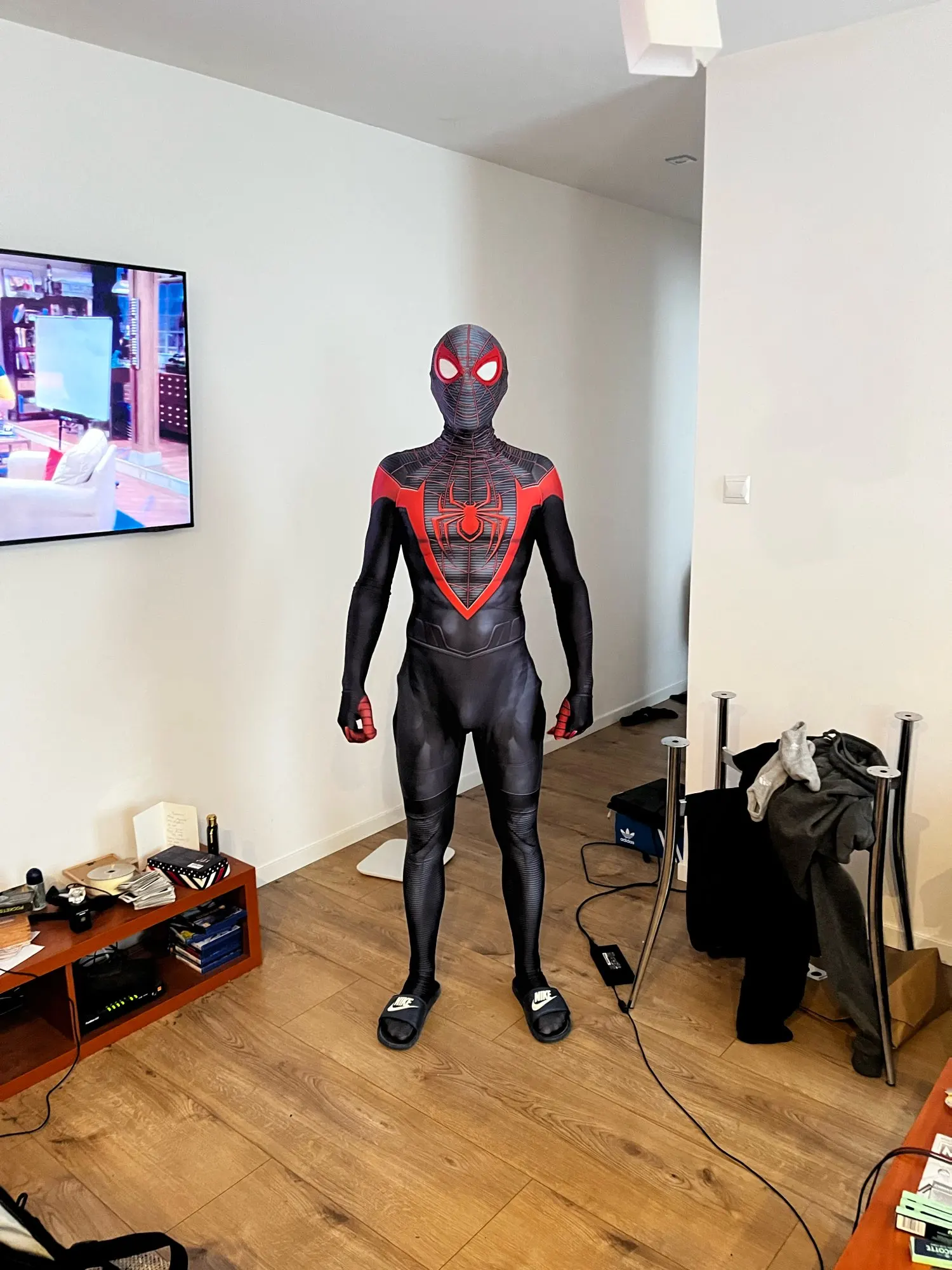 Halloween Adults Kids Miles Morales PS5 Spiderman Peter Parker Superhero Cosplay Costume Full Bodysuit Zentai Second Skin Party