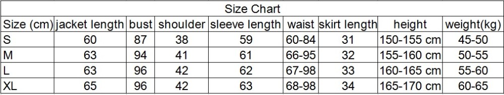 Full Set includes: 1 jacket + 1 skirt + 3 necktie(1 red + 1 green + 1 blue )