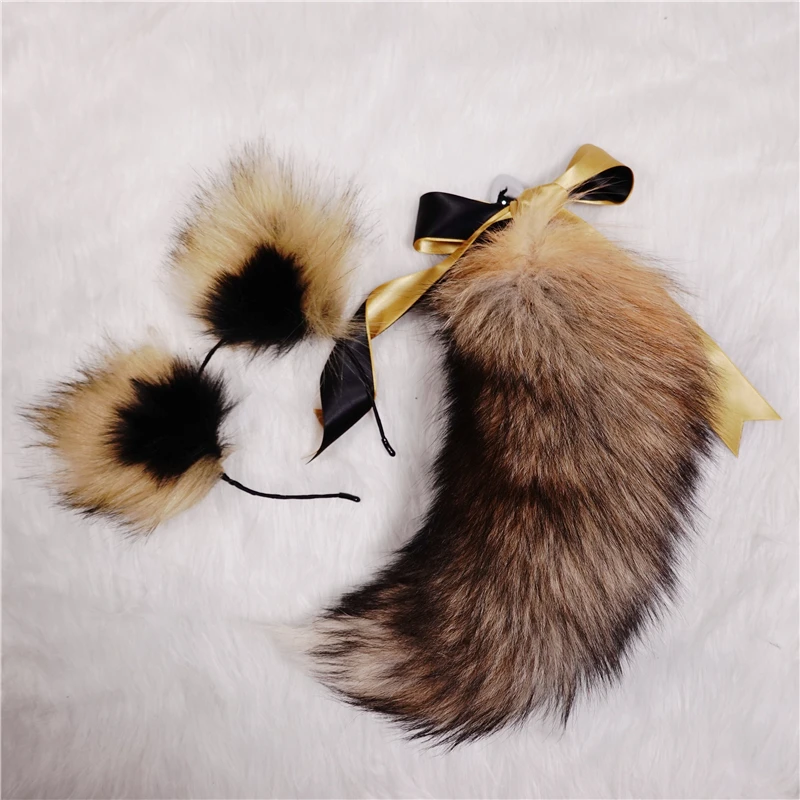 Real Fox Tail Bow Metal Butt Neko Cat Ears