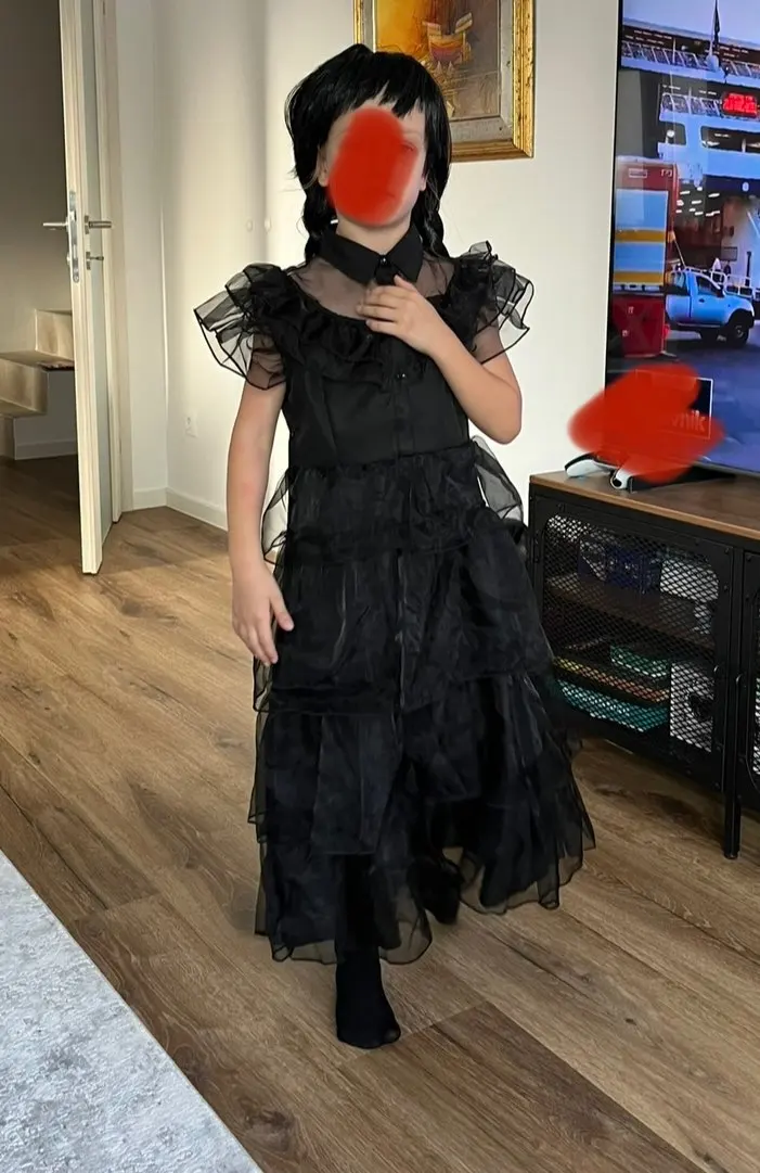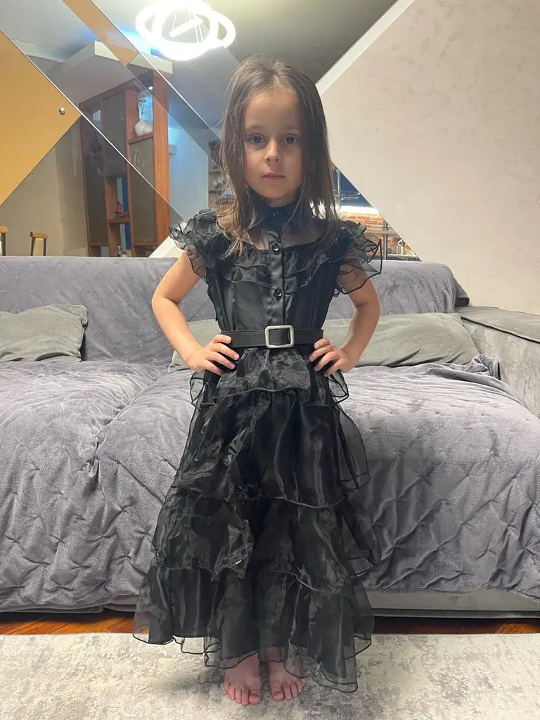 NWZSM Carnival Vestidos Wednesday Addams Cosplay Costume For Girl 2023 New Teenage Kids Mesh Party Evening Dresses 5 10 14 Yrs